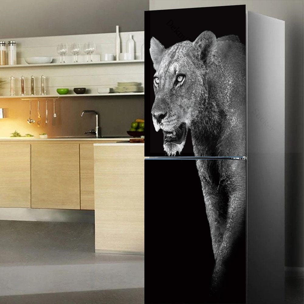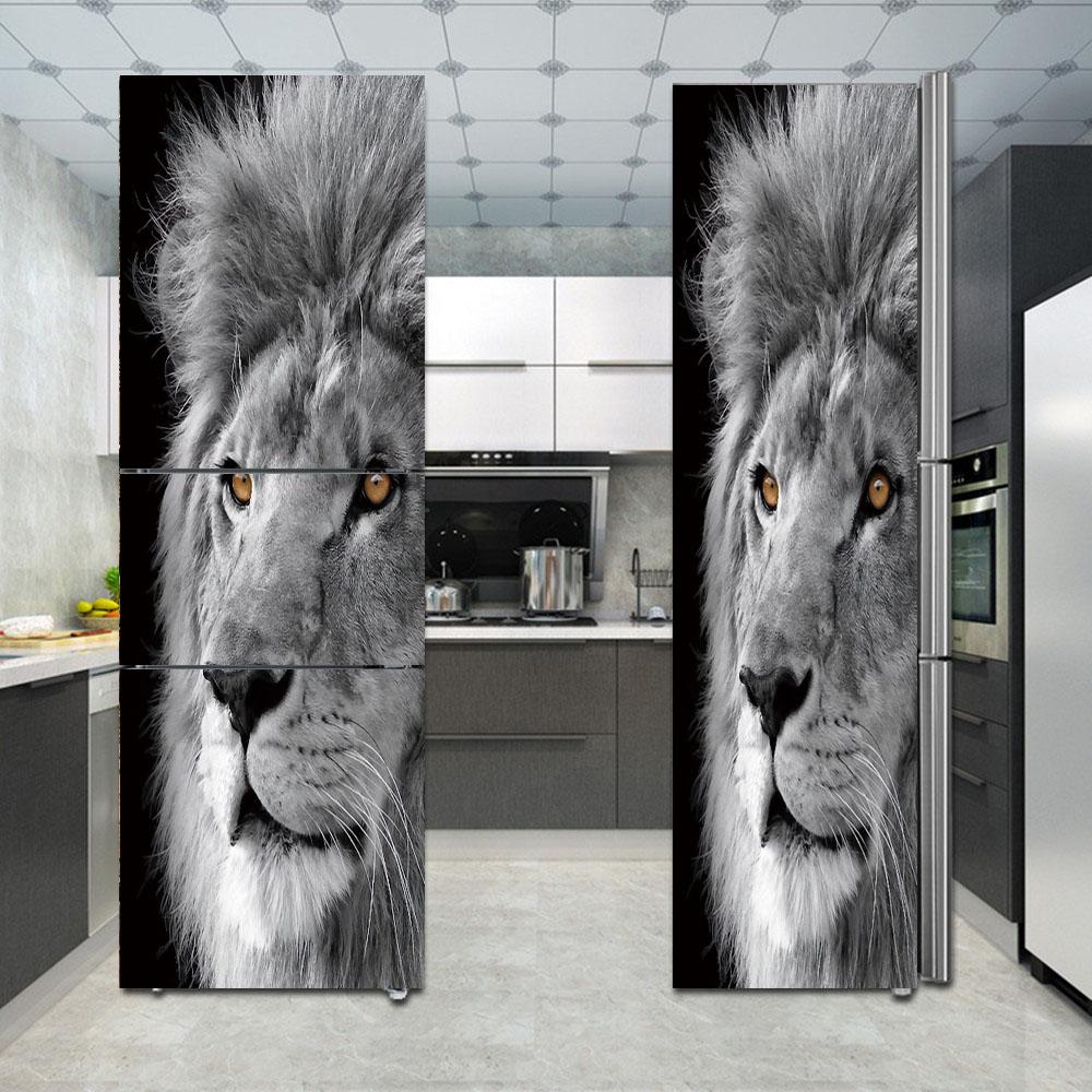 Крутые наклейки на холодильник с изображением льва, дверная крышка холодильника, самоклеящаяся кухонная виниловая пленка, декор, обои с изображением животных, фреска, декор для комнаты для мальчиков