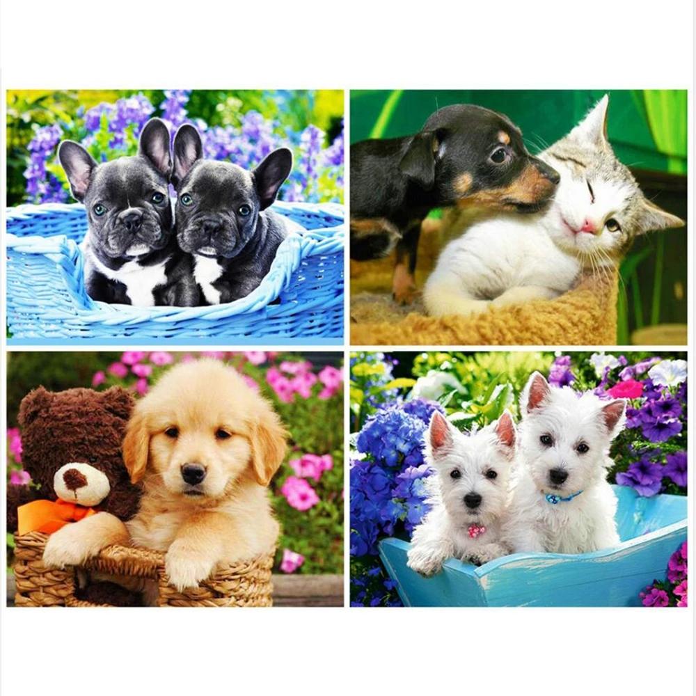 5D DIY Алмазная картина Счастливая собака играет Алмазная вышивка Набор для вышивки крестом Полный горный хрусталь Мозаика Домашний декор