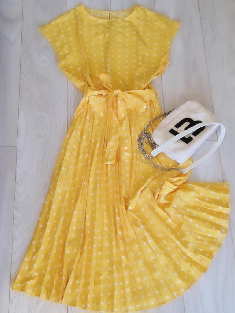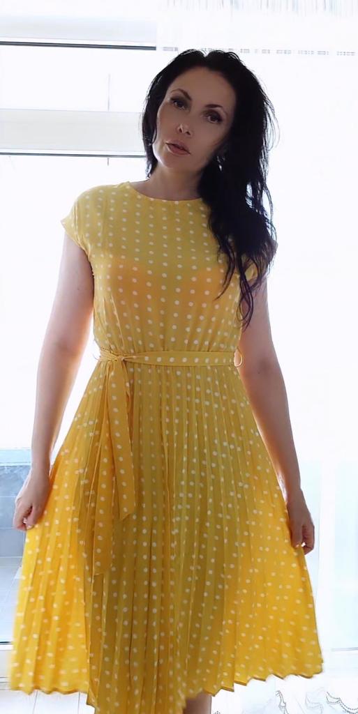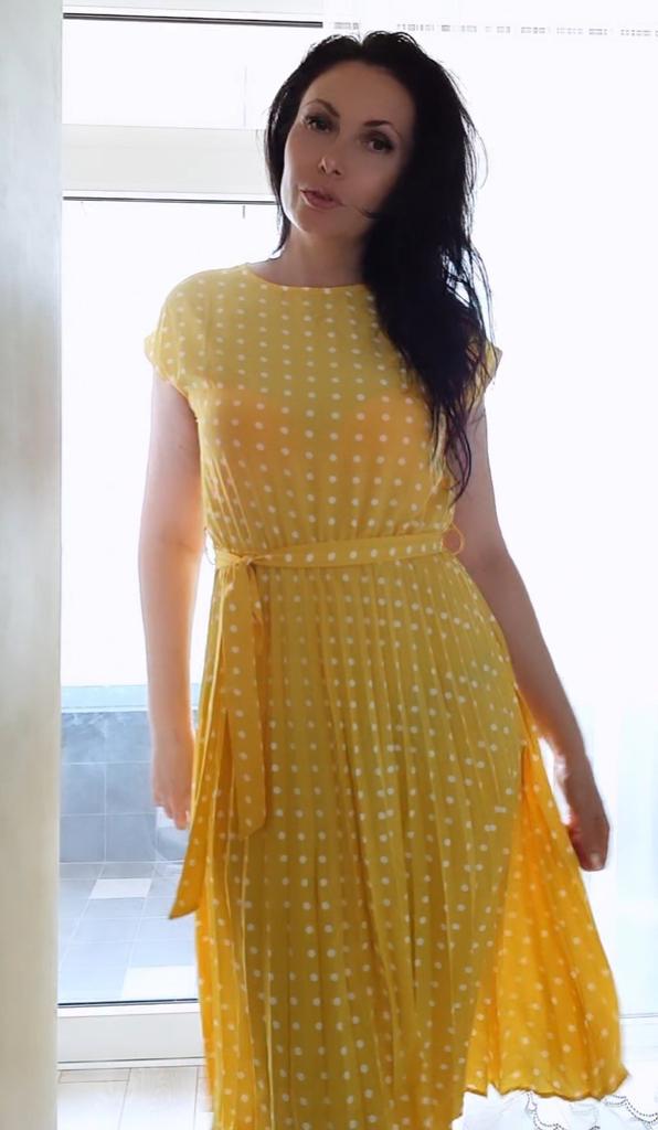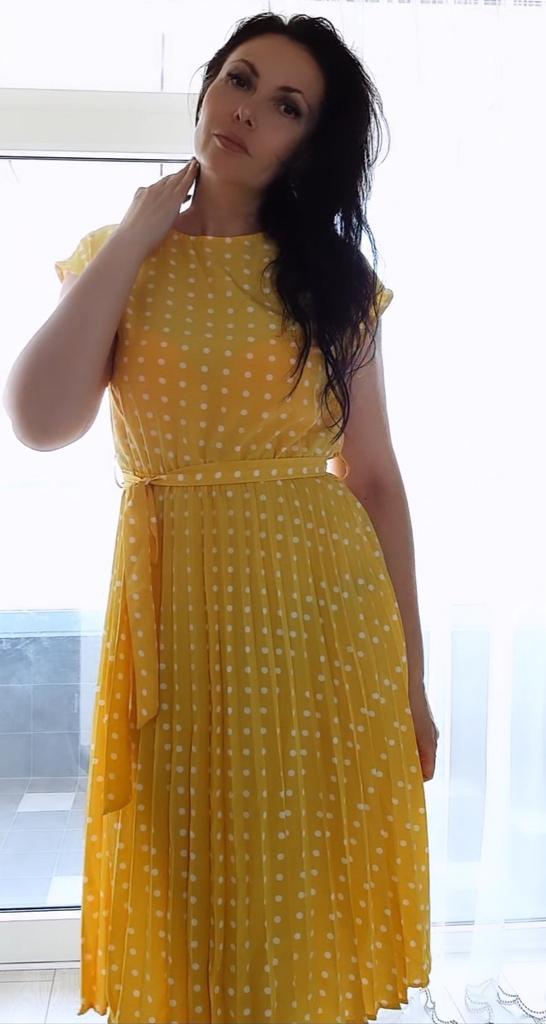 Плиссированное платье Hi Dawn. 💎Очень понравилось, село, как будто шили на меня. Рада, что заказала))!!! 💎Платье желтого цвета. 💎Платье визуально делает более узкими плечи и более пышной грудь. 💎 Ткань нежная и воздушная, приятная к телу. В подарок продавец положил резиночку). 💎 Крой платья сделан качественно, швы ровные. 💎 На размер 44 рост 174см. заказала М, село идеально, соответствует размерной сетке, талия завышена. 💎 После стирки внешний вид не изменился, отглаживается легко. 💎 Преимущество таких моделей в том, что они выгодно подчеркивают любую фигуру, делая ее стройнее и вытянутей. Платье понравилось), можно смело надеть на выход, и для повседневной носки, рекомендую!!! 💎 Доставка отслеживалась до места выдачи товара. Спасибо Joom💕