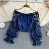 Шифоновая рубашка на одно плечо, прозрачная сетчатая строчка, свободная талия, укороченный топ с открытыми плечами, женские топы