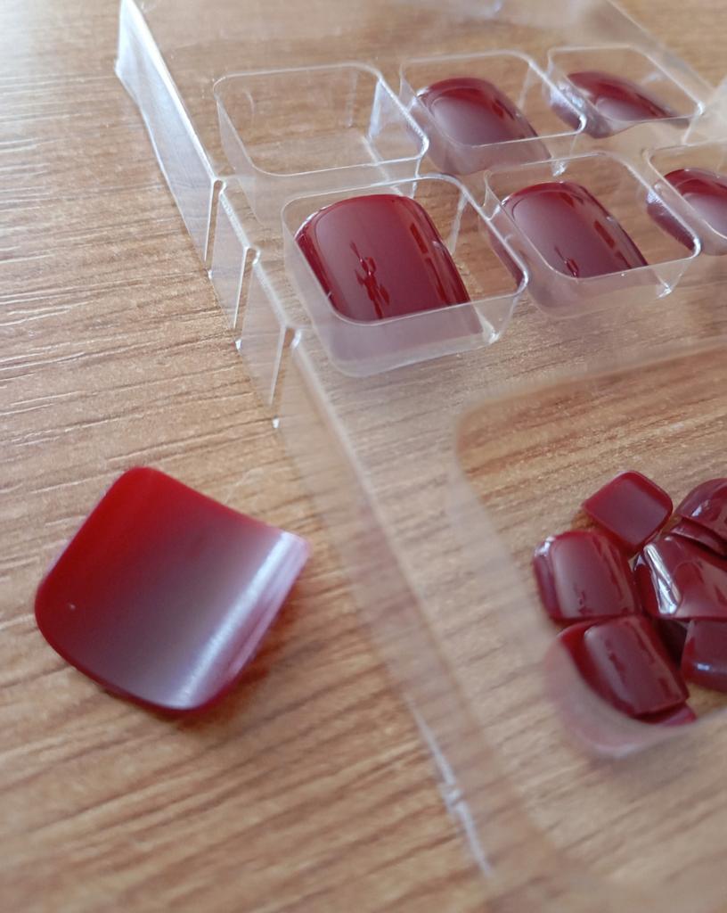 Педикюр за 10 минут💅 Не первый раз покупаю накладные ногти для педикюра. В прошлом году были светлые с розовым оттенком, за 2 года до этого - бордовые. Решила на этот сезон снова купить темно-красные❤️ ✨В наборе кроме ногтей есть и двусторонний скотч для наклеивания, это большой плюс (хотя у меня есть запас таких наклеек) ✨Цвет - тот, что нужно ✨Все аккуратно упаковано в фирменную коробку ✨Ногти легко подрезать и подкорректировать, чтобы подходили идеально ❗❗❗По опыту прежних лет, ногти на ногах на этом скотче держатся отлично, больше месяца. Лучше, чем подобные на руках, оно и понятно, посуду ж каждый день по нескольку раз моем. Приклеила в начале лета, фото дополняю! Хороший бюджетный вариант педикюра. Удачного шоппинга💋