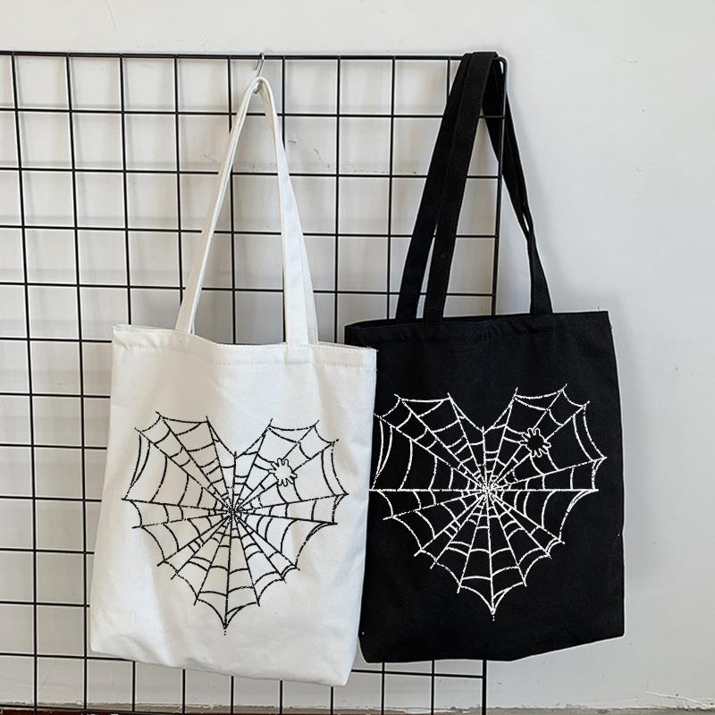 Японская готическая винтажная холщовая сумка с принтом паутины для женщин - Большая вместительная наплечная и хозяйственная сумка