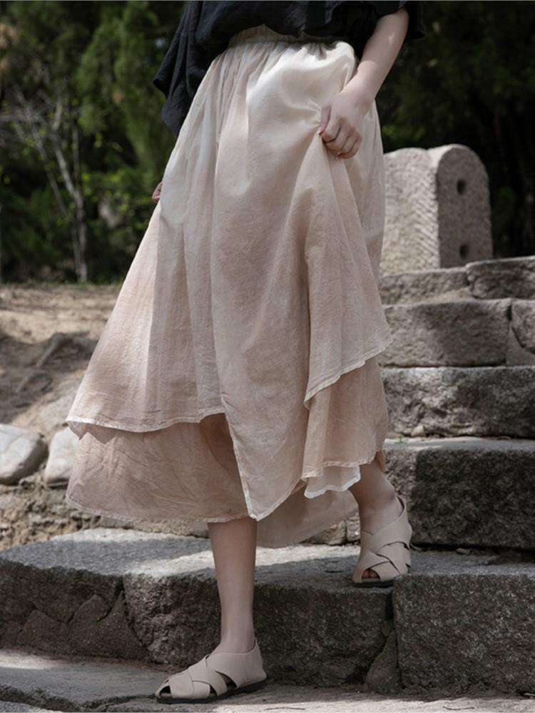Johnature Женские винтажные нерегулярные юбки с эластичной резинкой на талии, летняя повседневная женская одежда, двойные хлопковые льняные юбки