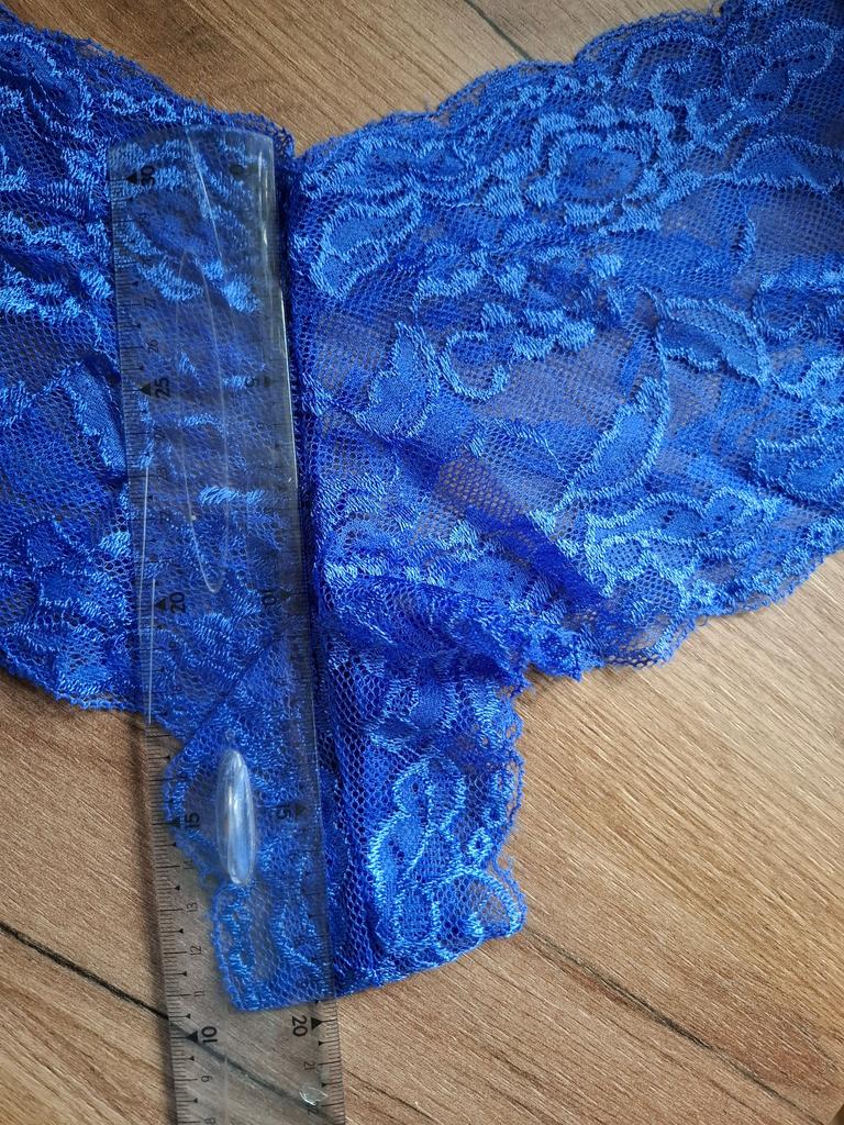 Тонкое, нежное, эластичное кружево. Тянется хорошо. Ожидание/реальность не совпали: трусики мелкие по глубине, не шортиками, как показано на картинке. На параметры : под грудью 94, ОГ 110, размер 2 хорошо вверху, надевается без проблем. На грудь не более 3 размера. Шорты не глубокие, кружево 14см, на ОБ 115 сели нормально. При небольшом животике могут скатываться. За цену в 216 руб пойдёт!