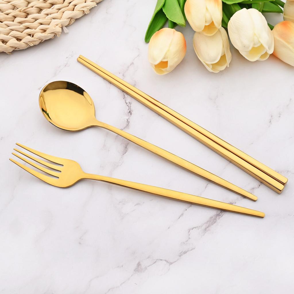 В пакет включено: 1шт нож、1шт ложка、1шт вилка、1 пара палочек для еды。