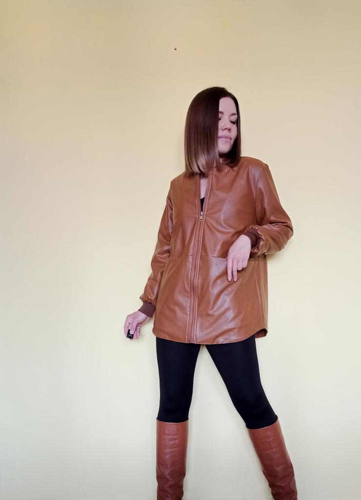 🧥 Легкая кожаная куртка из 21top Посмотрите какой огромный размерный ряд аж до 7XL! Выбрала цвет "кофейный" по факту он рыже-коричневый (чуть больше рыжит, чем на картинке продавца), но мне нравится такой. Качество очень порадовало - кожа хоть и искусственная, но это не клеенка дешевая, а вполне себе достойная на вид. Спереди большие квадратные карманы - очень удобные, но я бы добавила боковые кармашки тоже. Воротник сделан как у бомбера, но в отличие от модели бомбера данная куртка выглядит более классической, менее обязывающей к какому-то определенному стилю. Подкладка стеганная оранжевого цвета. Я пристально изучила другие отзывы, и взяла себе размером побольше, чтобы рукава на мой рост 169 см и широкие плечи были длинные. Сама я вообще-то размера XS, но что-то подстреленное короткорукавное не хотелось, так что я заказывала XXL, чтобы получился как бы оверсайз. По рукаву вышло как раз, по размеру конечно просторно, но вроде смотрится неплохо с моим ростом. Куртка довольно длинненькая получилась и объемная, как я хотела. При этом вроде и в плечах и спине не шибко потонула. Как вам такой размер на мне? Норм? Пишите в комментариях. Я думаю что неплохо смотрится. Рекомендация: если ваш рост похож, но плечи не такие широкие как у меня, берите XL, думаю с длинной рукава попадёте. Куртка мне нравится, на тёплое межсезонье поношу. Есть ещё в черном и красном расцветках! Рекомендую!
