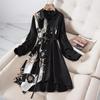 Женское платье-рубашка, свободное платье трапециевидной формы с длинными рукавами, женские платья средней длины на пуговицах со шнуровкой и принтом, свободное платье 4XLDress