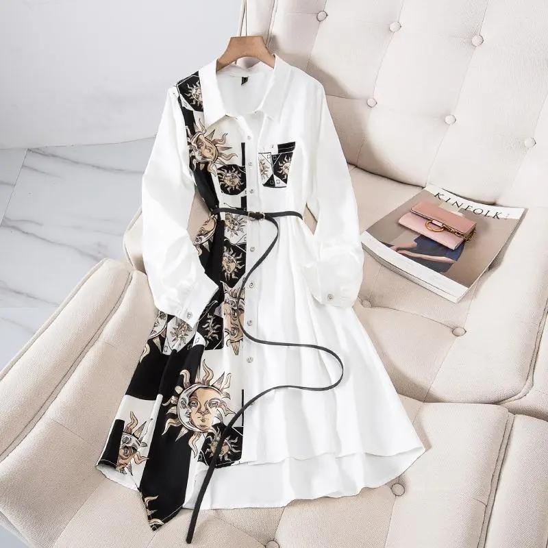 Женское платье-рубашка, свободное платье трапециевидной формы с длинными рукавами, женские платья средней длины на пуговицах со шнуровкой и принтом, свободное платье 4XLDress — купить товар онлайн с бесплатной доставкой по всему миру!
