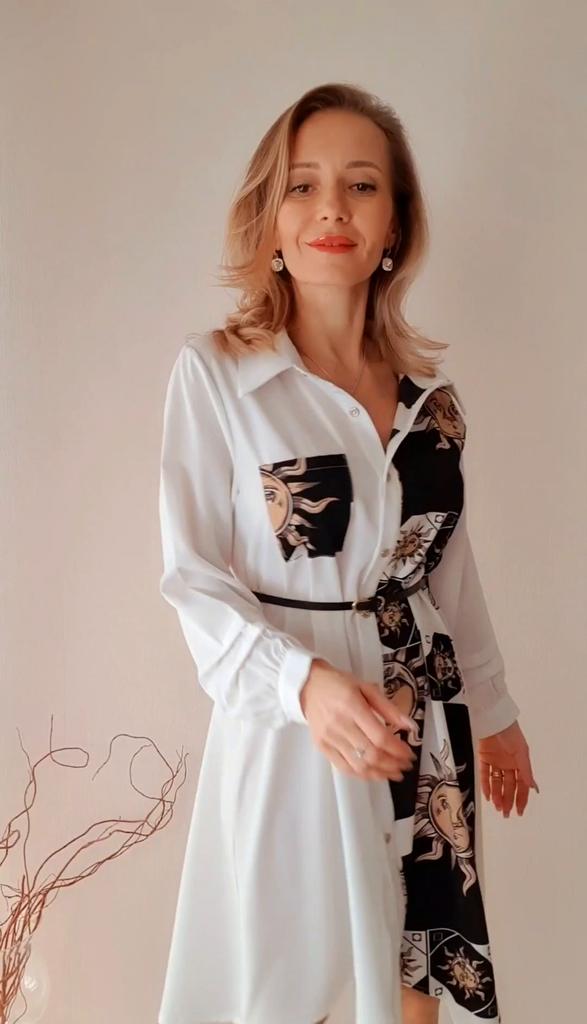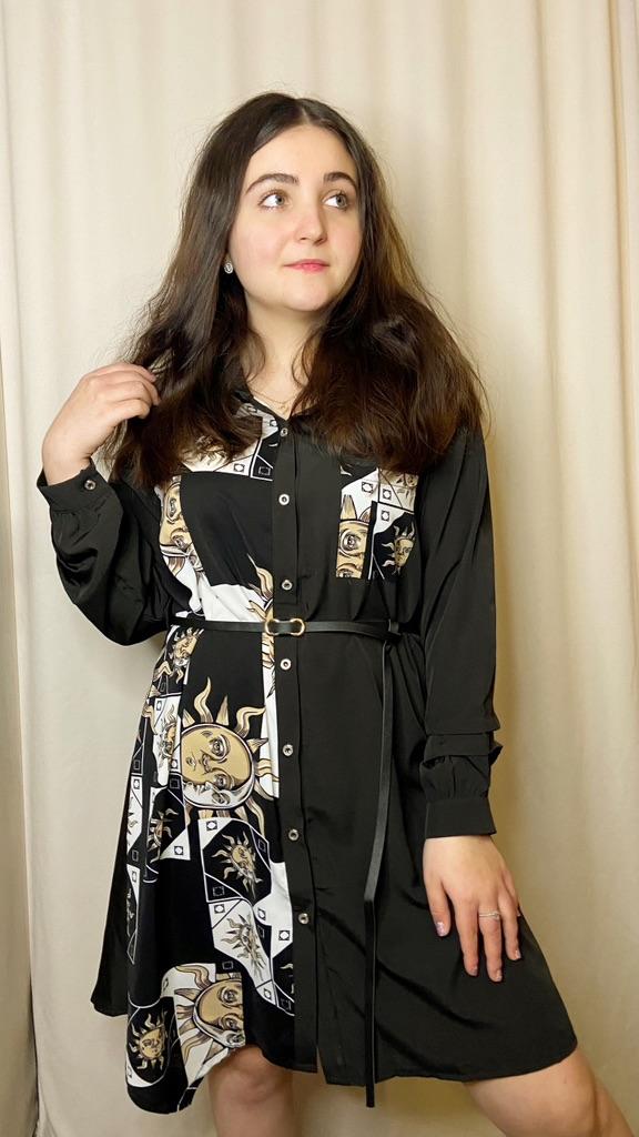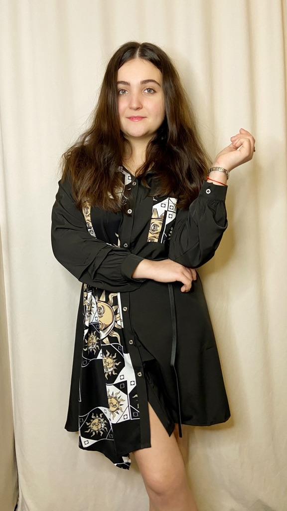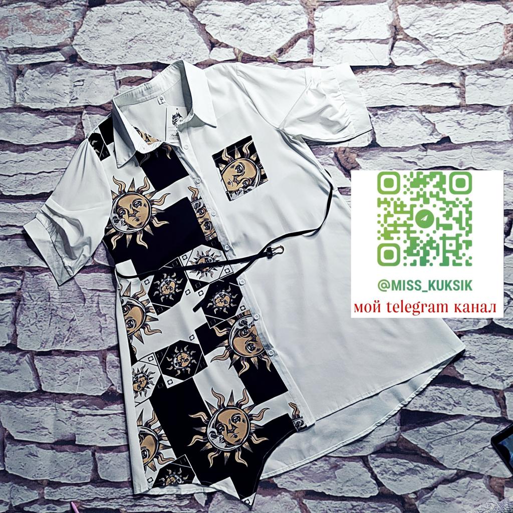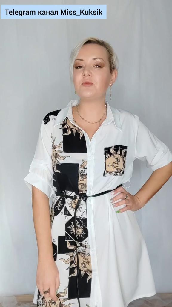 Платье - солнышко 🌞 *Все ссылки на вещи, которые используются в этом обзоре можно найти только в моем Telegram канале Miss_Kuksik Ищите пост по тегу #платье_солнышко И не забудь подписаться ✔ Привет! Это платье привлекло меня простым дизайном и в то же время оригинальным принтом. Давайте на него посмотрим! Ткань: Это синтетика, похожа на плотный шифон. Даже при том ,что здесь есть вставки белого цвета, ткань не просвечивает бельё. Не тянется, мягкая, тонкая, практически не накапливает статику. Дизайн: Платье - рубашка с коротким рукавом,на рукаве есть небольшие оборки. Спереди платье полностью застёгивается на пуговицы. В комплект добавлен тонкий длинный пояс из п/у кожи. Спереди вставка с оригинальным принтом и эта вставка чуть ассиметрична. Что придаёт дизайну оригинальную нотку. Так же имеется накладной функциональный карман на груди. Минусы: Для себя не обнаружила, качество отличное. Нюансы: Обратите внимание, что по ссылке есть длинный и короткий рукав! Цвет: Чёрно-белое Сезон: Лето Размер: На мне XXL Мои параметры: рост 172 см 95/76/105 см Детальные замеры изделия: Длина 90/97 см Плечи 41 см Длина рукава 27 см ОГ 114 см ОТ 116 см ОБ 140 см Резюмирую: Можно носить как платье и как тунику. Летний жаркий денёк незаменимая вещица. Рекомендую.Берём. И не прощаюсь, Miss_ Kuksik❤️