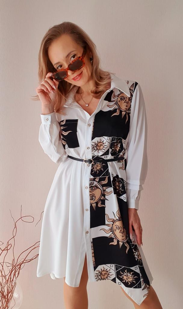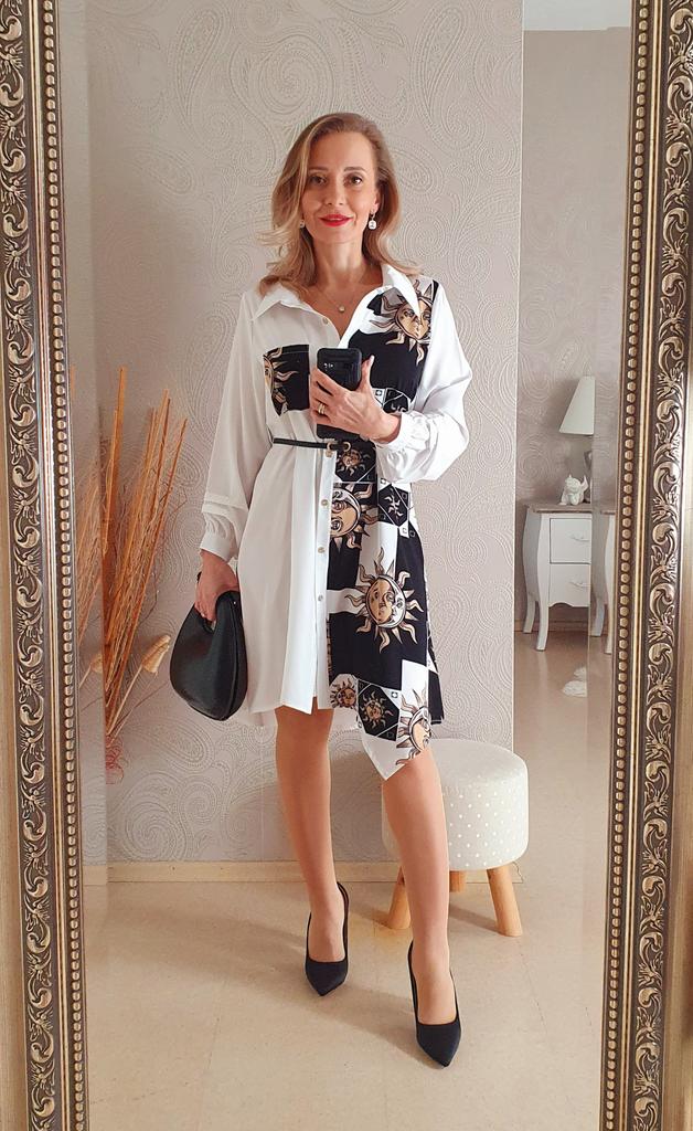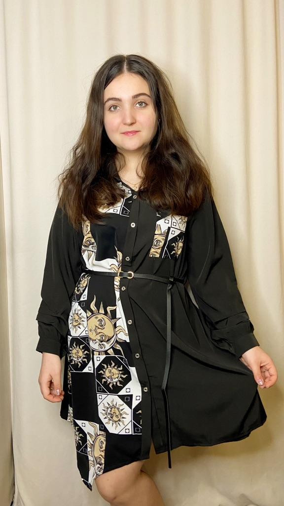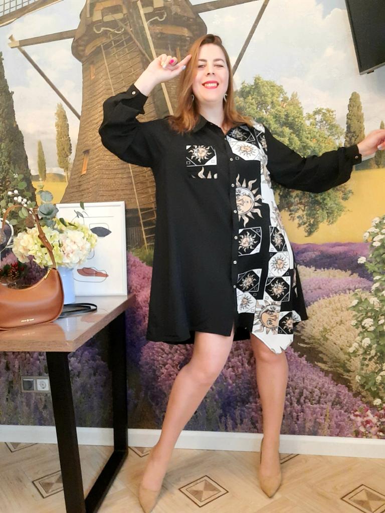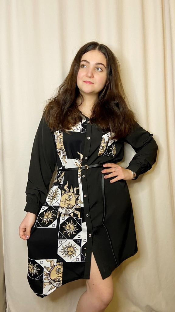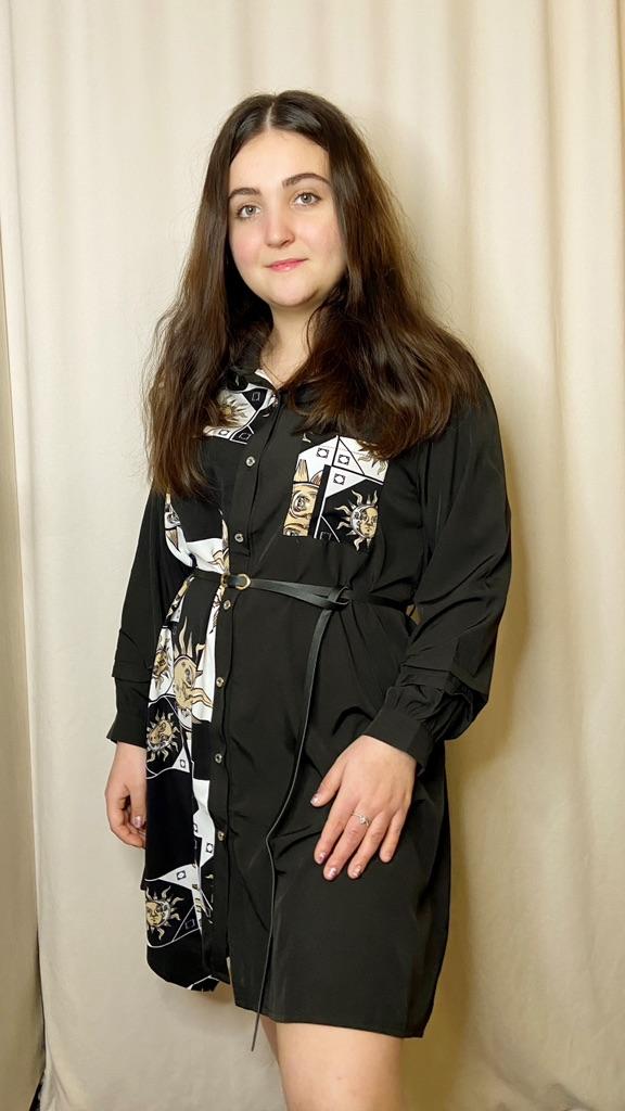 Платье - солнышко 🌞 *Все ссылки на вещи, которые используются в этом обзоре можно найти только в моем Telegram канале Miss_Kuksik Ищите пост по тегу #платье_солнышко И не забудь подписаться ✔ Привет! Это платье привлекло меня простым дизайном и в то же время оригинальным принтом. Давайте на него посмотрим! Ткань: Это синтетика, похожа на плотный шифон. Даже при том ,что здесь есть вставки белого цвета, ткань не просвечивает бельё. Не тянется, мягкая, тонкая, практически не накапливает статику. Дизайн: Платье - рубашка с коротким рукавом,на рукаве есть небольшие оборки. Спереди платье полностью застёгивается на пуговицы. В комплект добавлен тонкий длинный пояс из п/у кожи. Спереди вставка с оригинальным принтом и эта вставка чуть ассиметрична. Что придаёт дизайну оригинальную нотку. Так же имеется накладной функциональный карман на груди. Минусы: Для себя не обнаружила, качество отличное. Нюансы: Обратите внимание, что по ссылке есть длинный и короткий рукав! Цвет: Чёрно-белое Сезон: Лето Размер: На мне XXL Мои параметры: рост 172 см 95/76/105 см Детальные замеры изделия: Длина 90/97 см Плечи 41 см Длина рукава 27 см ОГ 114 см ОТ 116 см ОБ 140 см Резюмирую: Можно носить как платье и как тунику. Летний жаркий денёк незаменимая вещица. Рекомендую.Берём. И не прощаюсь, Miss_ Kuksik❤️