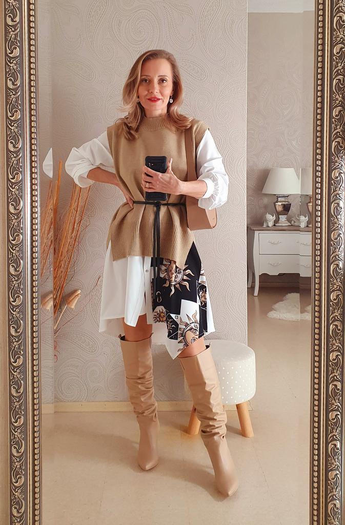 РУБАШКА-ПЛАТЬЕ от магазина 21-Top 🏷 Девочки, вещь -бомба! Понимаешь это, когда надеваешь на себя и начинаешь создавать образы. В голове сразу куча идей, как пазлы складываются: и с этим, и с этим, и с тем...... Оооочень мультисочетаемая! По-другому назову её универсальной И в том плане, что подходит ко многим вещам и обуви. И в том плане, что надевать можно её куда угодно: прогулка, работа, шопинг, ресторан, учёба....... Короче, я очень довольна собой, что купила эту рубашку. Мало того, взяла в двух расцветках, белую ещё жду 😊👍 Пришла аккуратно сложенной. С бирками. Без запаха. Мнётся, но очень легко и быстро гладится. В чёрном цвете не просвечивает. Очень интересный фасон: сочетание однотонной ткани и ткани с рисунком. А ещё вставка с рисунком с одной стороны длиннее, чем однотонная половина, идёт клином. Застёгивается на ряд золотых пуговок. Идут снизу до верху. Рукава тоже на пуговку застёгиваются и сделаны ещё две складки, они прострочены недалеко от манжеты и только сверху. Поэтому форма рукава интересная получается. Есть один накладной кармашек. Так же в комплекте длинный пояс с золотой пряжкой-восьмеркой. Он из искусственной кожи. Для него сделаны шлёвки. Носить можно как платье/ как тунику / как накидку. На выбор у продавца представлено в 2х расцветках и еше можно выбрать рукав(короткий или длинный). Материал: полиэстер. Приятный и ласковый к телу. Размеры L - 4XL. Я выбрала максимальный Мне нравится, как сидит. Мой рост 173см. ОГ 98см. ОТ 85см. ОБ 107см. Размер одежды 48-50. Замеры в 4ХЛ: ✏длина 101см ✏плечи 45см ✏длина рукава 55см ✏ОГ 128см ✏ОТ 134см ✏длина ремня 150см Классная рубашка 🔥👍 Большое спасибо Джум и продавцу ❤ Всем отличных покупок 👋 ____________________________________________ Мой Telegram-канал - Elena_likui Там все самое интересное: - РОЗЫГРЫШИ каждый месяц! - лучшие товары - ПРОМОКОДЫ - вопросы/ответы - рецепты - моя жизнь за кадром Давай дружить! ----------‐---------------------------------------------------------------- #elena_likui #ДжумДоставил #21-Top #платье_рубашка