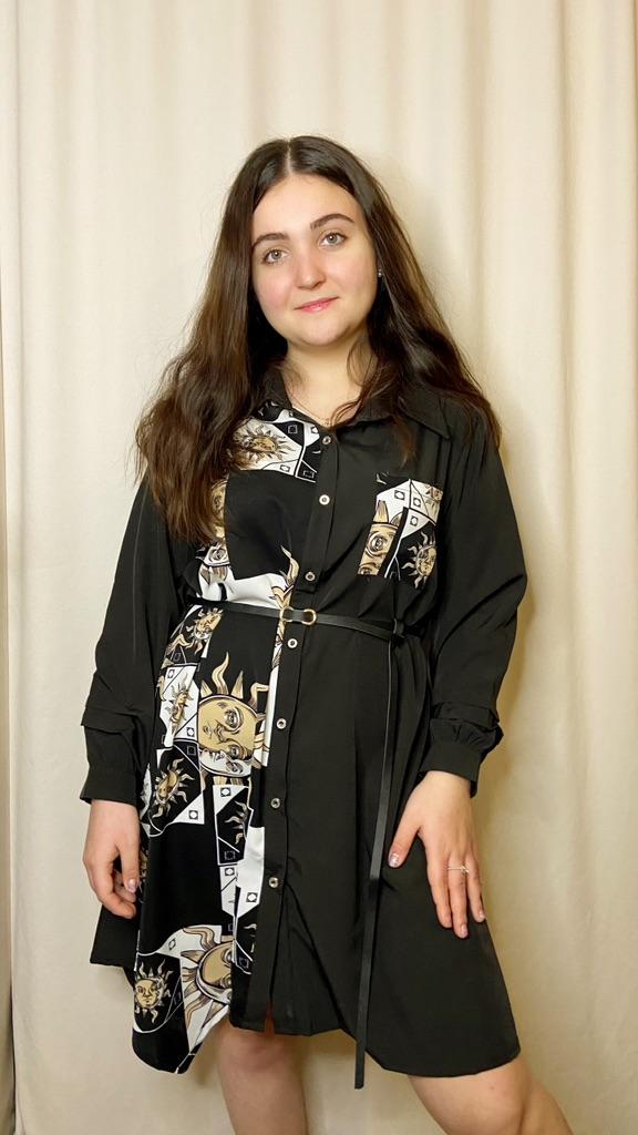 🌺Платье- рубашка с оригинальным принтом 🌺 Платье свободного кроя , удобная и универсальная модель на каждый день. Платье с длинным рукавом подчеркнёт силуэт и зрительно сделает стройней. Платье также подходит для худых или полных девушек , хороший размерный ряд . Платье эффектно выглядит на любой фигуре. Если хотите подчеркнуть талию, в комплекте есть тонкий ремешок из PU кожи, он очень длинный, с большим запасом. Такое платье с пуговицами можно сделать строгий образ и застегнуть их все, или более кокетливым - и оставить парочку расстегнутыми. 🌺На груди есть кармашек. На рукавах декоративные защипы возле манжет. 🌺Платье идёт в двух расцветках, также можно выбрать его с длинным или коротким рукавом. 🌺Я на свои ог 96 см от 74 см об 97 см рост 164 см, взяла размер XL,село очень свободно, надо было брать L. 🌺Точные замеры платья в размере XL: Плечи- 41 см Рукав - 53 см Ог-105 см От - 112 см Об - 122 см Длина - 95 см 🌺Ткань- полиэстер, похожий на плотный шифон. 🌺Качество пошива великолепное, рекомендую 👍😘😘😘
