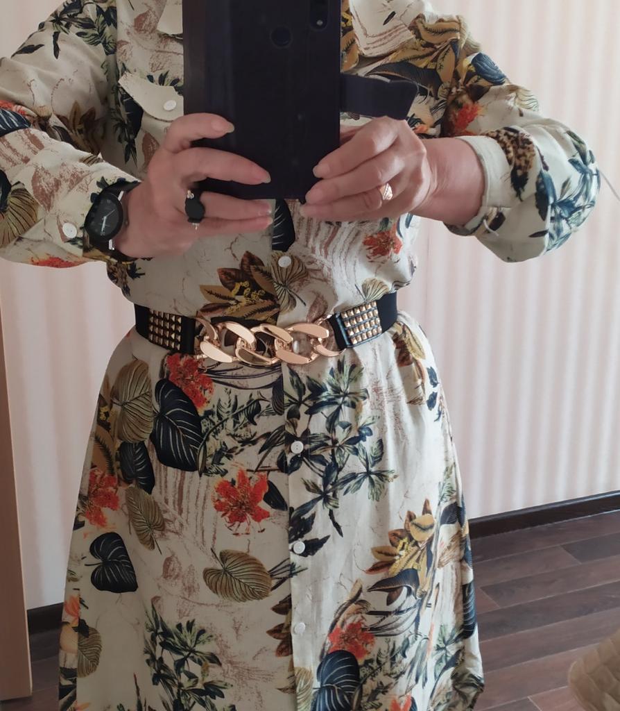 Думаю на черном однотонном платье будет смотреться хорошо.сделаны кнопки на ремне.будем смотреть как проявит себя в носке не будет ли расстегиваться.позже добавлю отзыв
