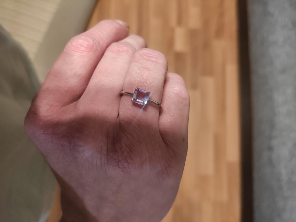 Посылка до Таганрога шла полтора месяца. Колечко размер 18-18,2. Серебро 925 проба с камнем, как на картинке. Камешек переливается. В подарок также пусеты положили, тоже серебро 925 пробы. Проба и на кольце и на пусетах стоит. Всё упаковано в коробочку, по пакетикам и тряпочка к ним. Колечко милое.