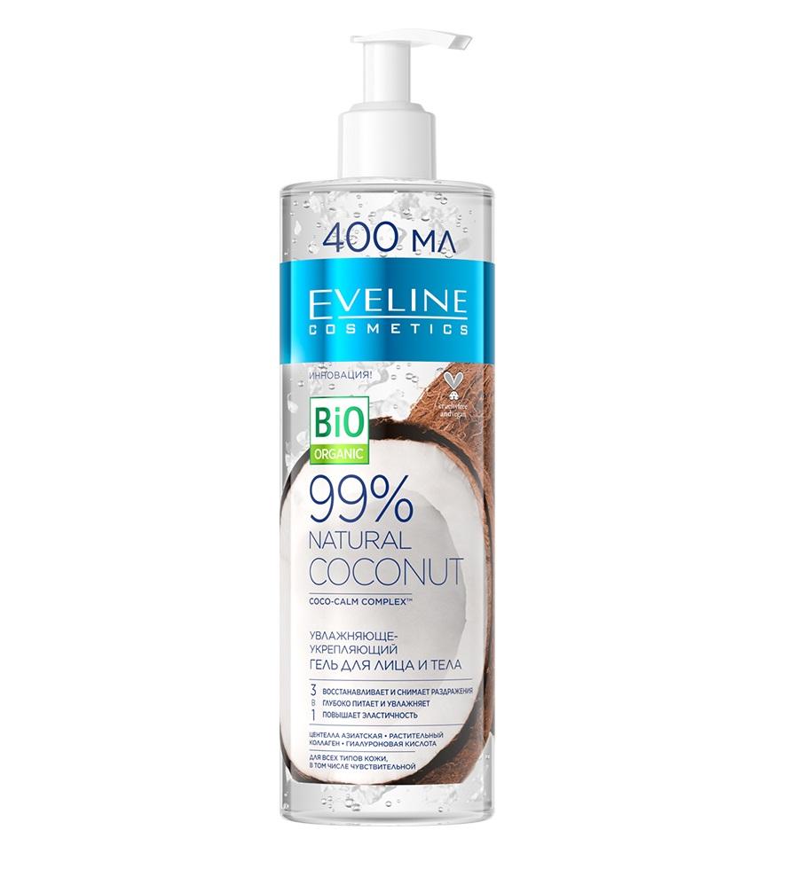 Увлажняющий укрепляющий гель для лица и тела 99% natural coconut сделает кожу невероятно увлажненной, улучшит ее плотность, упругость и упругость.