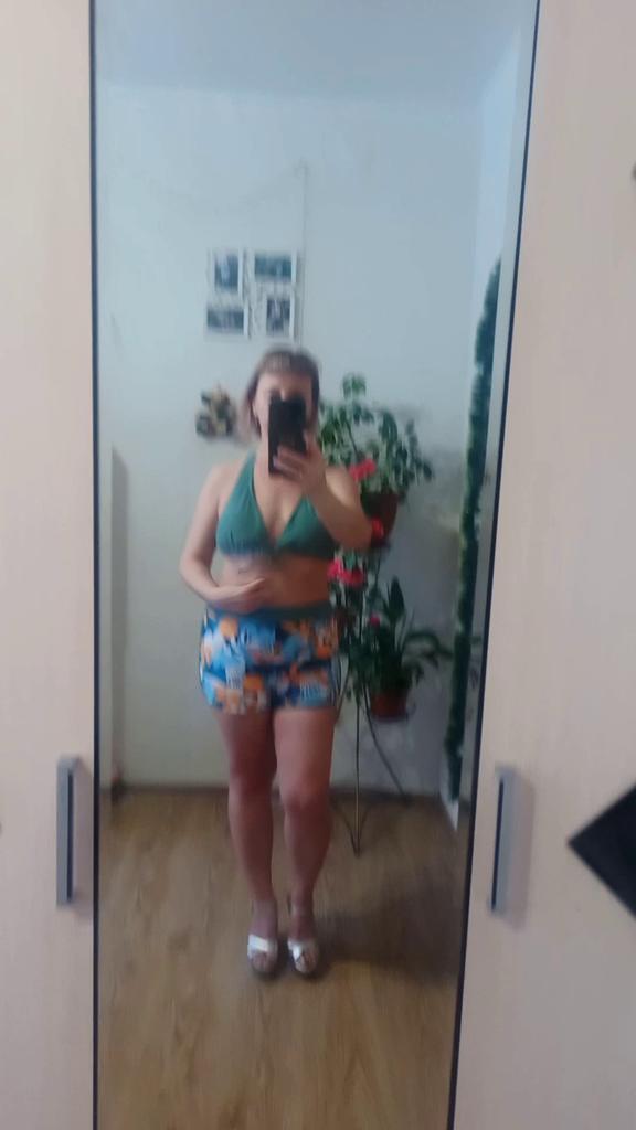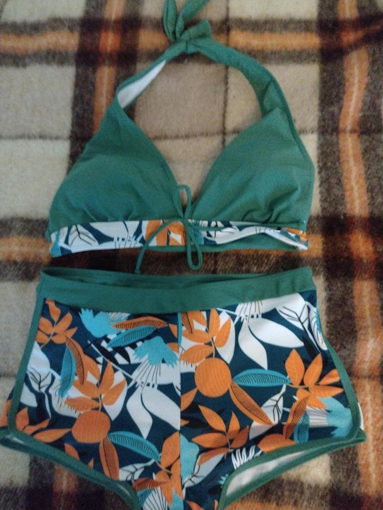 Красивый и комфортный купальник!👍 Состоит из лифа и шортиков.👋 Лиф с одной широкой завязкой сзади, можно регулировать,завязав потуже;со средними поролоном;с лентой под грудью, без жёстких каркасов.😊 Шорты с высокой талией, короткие, облегающие.🤗 Цвет я взяла зелёный,он не яркий, более приглушённый, природной палитры. Выглядит как на фото продавца 🙂👍 точь в точь. На параметры ОГ 94, ОТ 75, ОБ 98, рост 1, 65 я взяла L. Купальник мне подошёл идеально 👍💯 Мои замеры на L: ОГ 80 см, немного тянется 👍 ОТ 78 см, немного тянется 👍 ОБ 86-98 см, тоже тянется 👍 Длина шорт 29-32см.👍 Материал полиэстер и спандекс. Мягкий, приятный к телу, немного тянется,не просвечивает.💯 По качеству претензий нет:фабричное производство:сшит ровно, аккуратно, дефектов не имеет.👍💯 Рекомендую 🤗 к покупке.