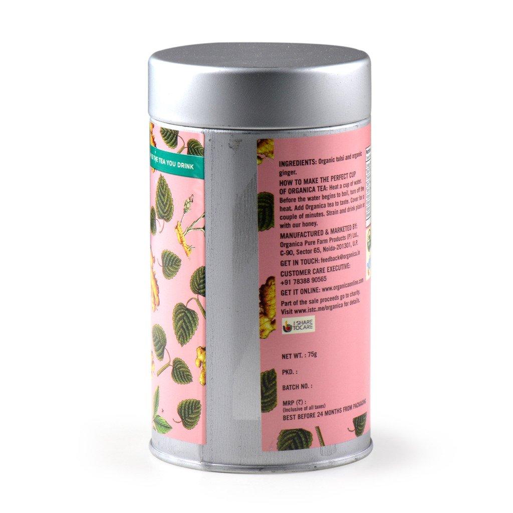 Тулси чай с Имбирем (Organic Tulsi Ginger Tea) – листовой чай, обладающий антиоксидантными, антистрессовыми и иммуностимулирующими свойствами. Напиток помогает снизить вес и избавить от головной боли, полезен для кожи и волос и способствует правильной работе пищеварения и сердечно-сосудистой системы. Чай с тулси и имбирем уменьшает лихорадку, заботится о здоровье зубов и полости рта, показан для растворения камней в почках, для контроля диабета и снижения риска раковых заболеваний. Напиток помогает бросить курить, стимулировать нервную систему и препятствовать артриту.