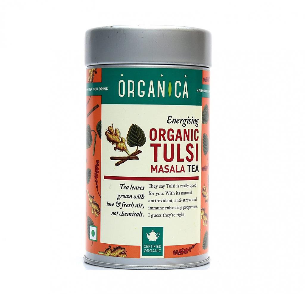 Тулси чай с Масала (Organic Tulsi Masala Tea) – листовой чай, обладающий приятным ароматом и вкусом. Этот напиток имеет тонизирующие свойства, помогает снять усталость и эмоциональное напряжение и восстановить сон. Регулярный прием чая способствует повышению иммунитета, очищению крови и печени от шлаков и улучшению кровообращения. Тулси с масала – это натуральный источник полезных веществ и антиоксидантов. Его рекомендуется принимать ежедневно по утрам, чтобы обеспечить себе заряд бодрости и хорошего настроения на целый день.