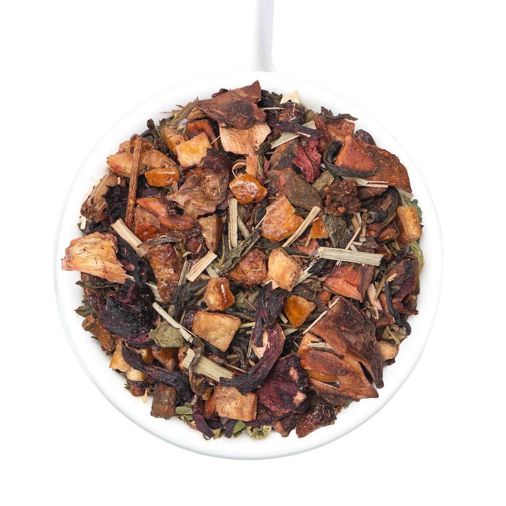 Зеленый чай (Green Tea), Апельсиновая цедра (Orange Peel), Гранатовые зерна (Pomegranate Kernels), Гибискус (Hibiscus), Лемонграсс (Lemongrass), Звездчатый анис (Star Anise), Экстракт маракуйи (Passionfruit Extract), Лимонная кислота (Citric Acid).
