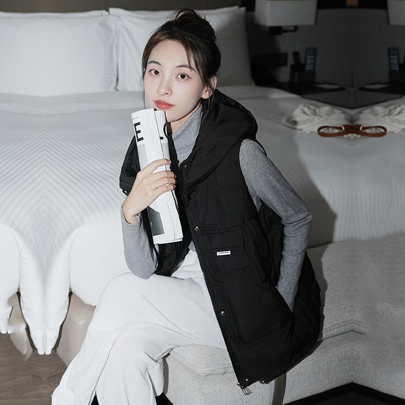 Женская осенне-зимняя верхняя одежда, утепленный жилет с хлопковой подкладкой, теплая куртка без рукавов с капюшоном, пальто, жилет