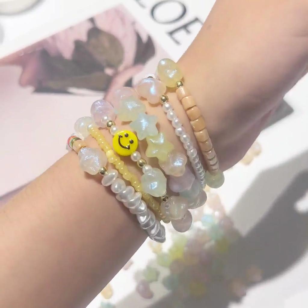 очень красивые бусинки-звездочки! камера плохо передает, но они очень красиво переливаются на солнце, на них как будто перламутровое напыление💗🫧