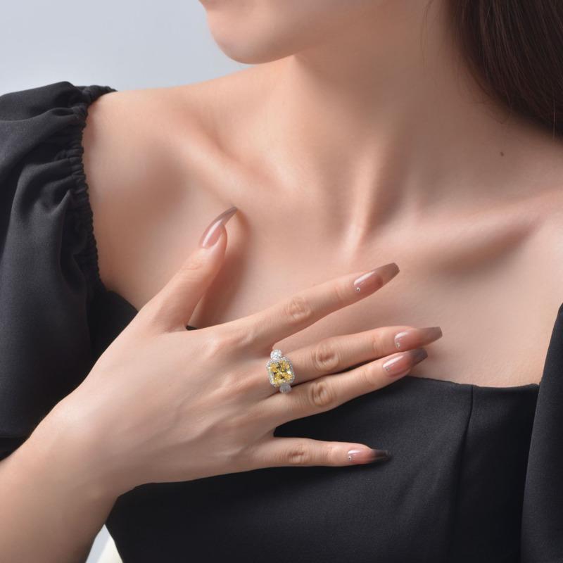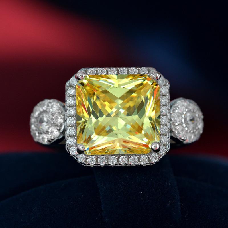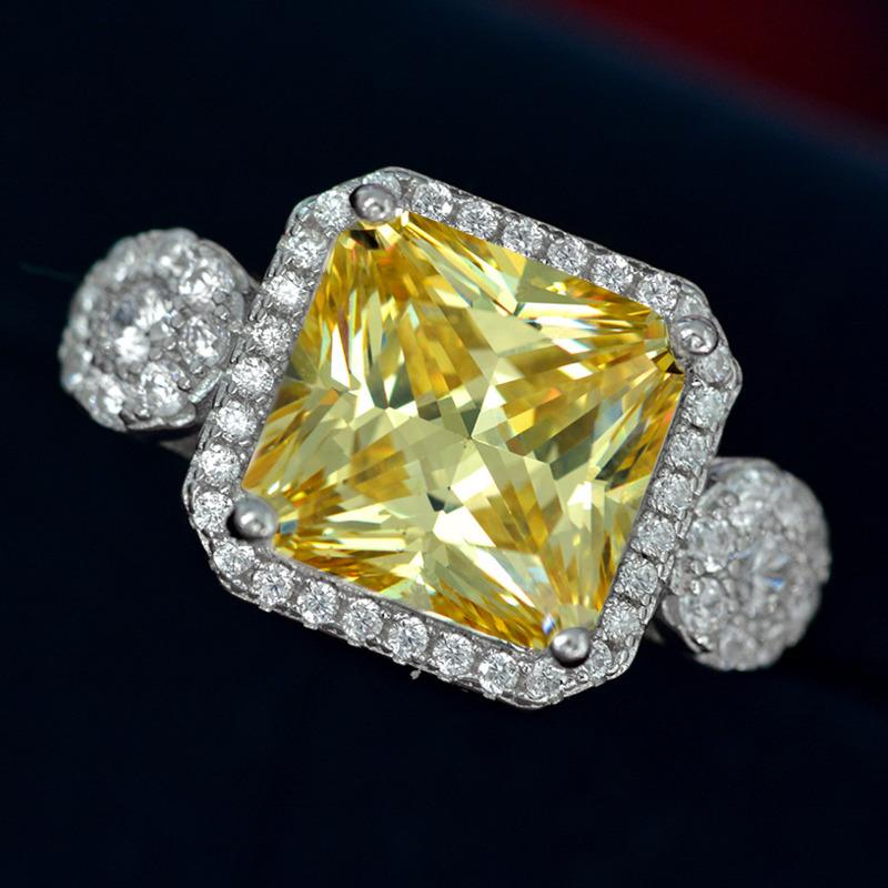 Gica Gema Серебро 925 Ювелирные Изделия Новое Желтое 10 * 10 Нежное Персонализированное Кольцо Для Женщин Изысканные Классические Ювелирные Изделия Высокого Класса Свадебная Вечеринка Подарки Новая Тенденция