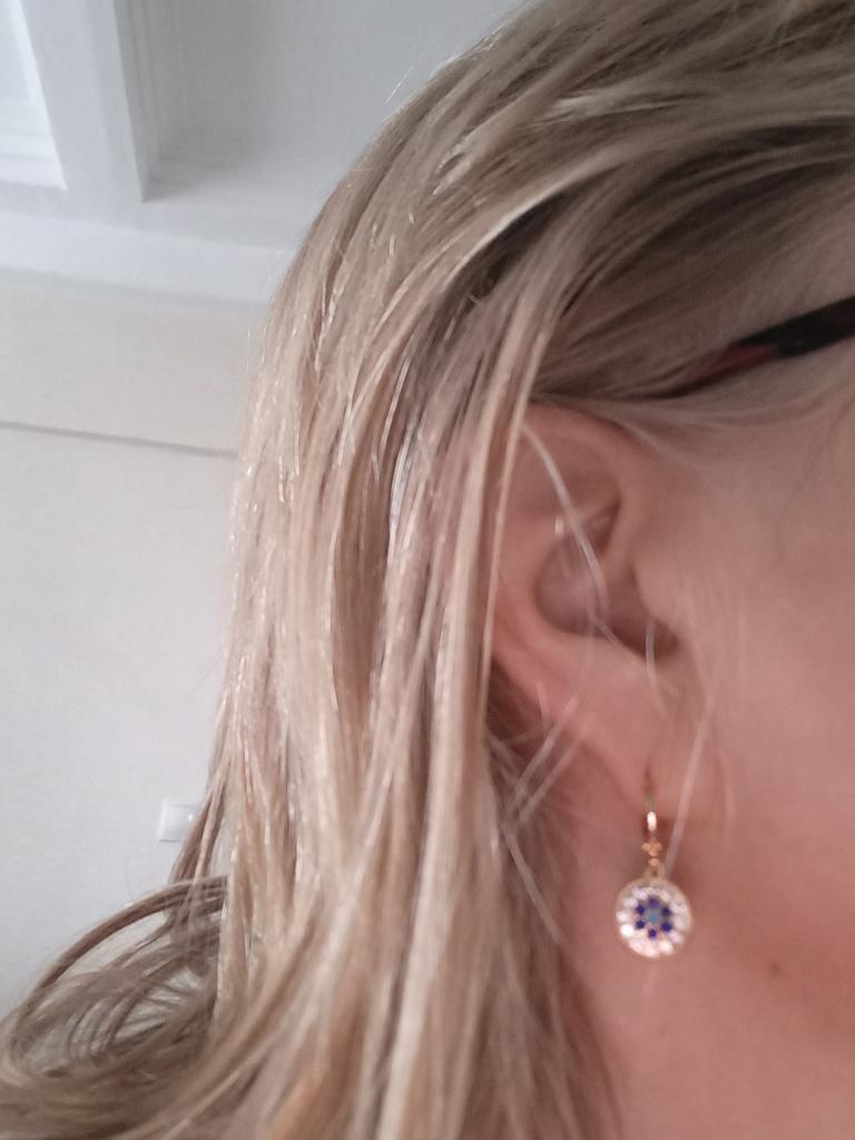 Красивый, изящный комплект. Всё как на картинке продавца. Размеры указаны верно : Сережки маленькие и лёгкие, диаметр 1,1см. Кулон 1,8см в диаметре. Рекомендую к покупке!🔥🥳