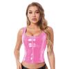 Сексуальные женские короткие топы на бретельках из ПВХ с блестящей молнией и латексом, короткие топы в стиле панк в стиле мото и байкеров