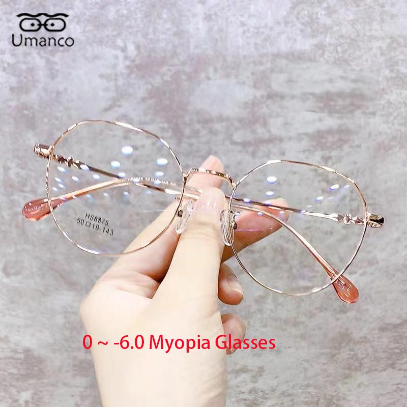 Очки унисекс для близорукости, сверхлегкие металлические очки в круглой оправе, женские и мужские очки с антисиним светом, плоские зеркальные очки-1,0 ~-6,0 — купить товар онлайн с бесплатной доставкой по всему миру!