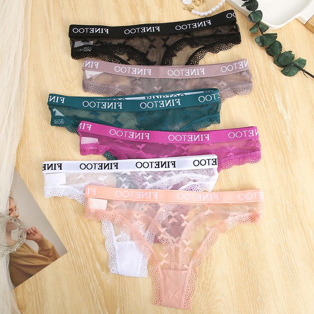 FINETOO Женское нижнее белье, сексуальные кружевные стринги, сексуальное нижнее белье с низкой талией, женское однотонное удобное дышащее белье