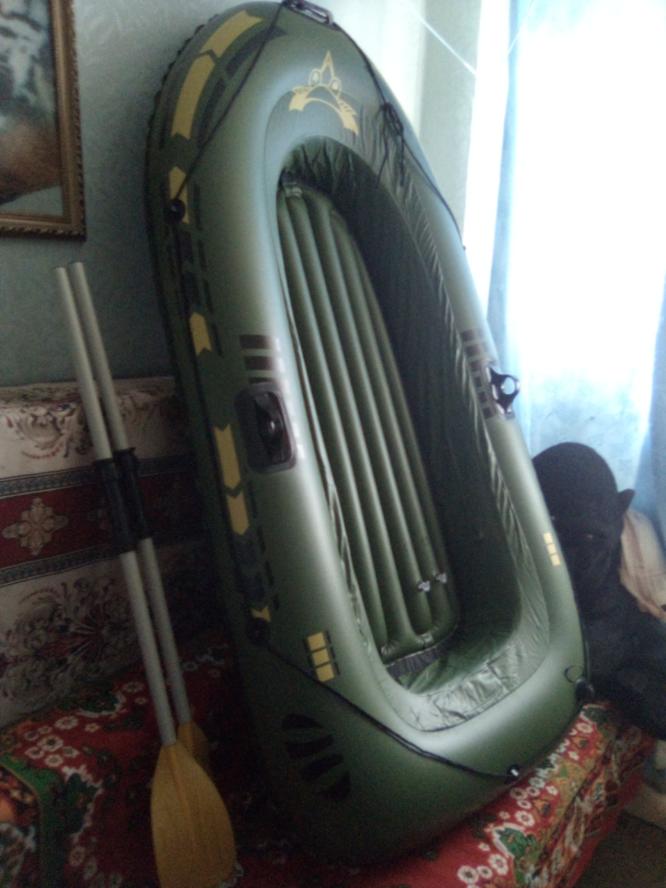 Лодка небольшая, можно с ребенком или одному,брал на рыбалку,незнаю как будет,весла прочные,насос игрушечный,веревка, ремкомплект и сумка под телефон в комплекте, где-то на озере пойдёт