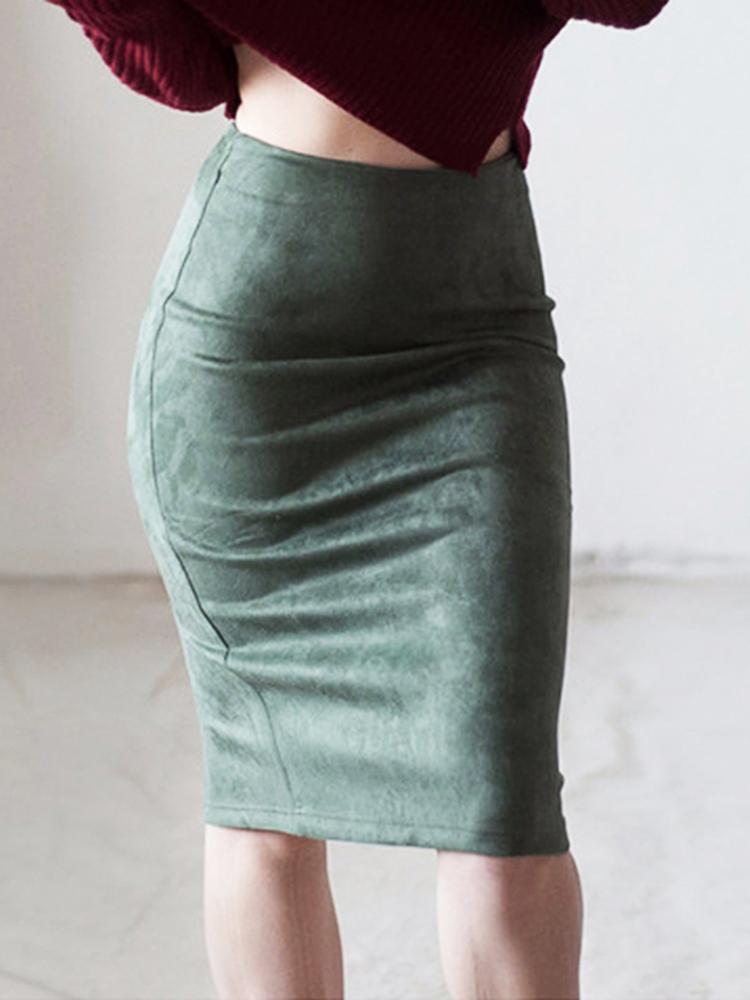 Женские юбки, замшевые однотонные юбки-карандаши, женские осенне-зимние облегающие облегающие юбки с высокой талией, винтажные замшевые толстые эластичные юбки с разрезом