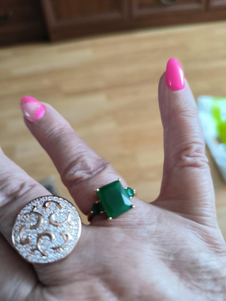 Колечко прелесть, смотрится очень красиво ,похож на изумруд дополняю,камень ,очень густой зелёный цвет.Наверное если бы. Увидела - не купила ,.и высчитав процент я поняла ,что золото выгоднее получается,,и этих изделий хватает на месяц ,а затем помойка ,а золото можно и сдать )) но вообщем это лирика .после недельной гости , колечко начало облазить,звезду снимаю