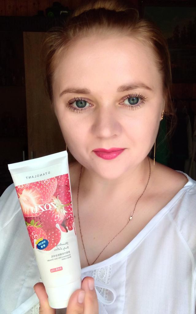 Клубничный лосьон для тела Обладает мягкой и нежной текстурой, легко впитывается. Хорошо увлажняет кожу и делает ее эластичной. Способ применения: После душа нанести небольшое количество крема на чистую кожу массирующими движениями до полного впитывания. Подходит для всех типов кожи. Объем - 250 грамм. Единственное, аромат мне не очень понравился. Но это дело вкуса. Хранить при комнатной температуре, в месте, защищенном от попадания прямых солнечных лучей. Перед применением протестируйте бальзам на локтевом сгибе - в случае отсутствия реакции, смело применяйте. Крем доставлен в почтовое отделение за месяц живым треком в сборной посылке. Товар и продавца рекомендую 👍