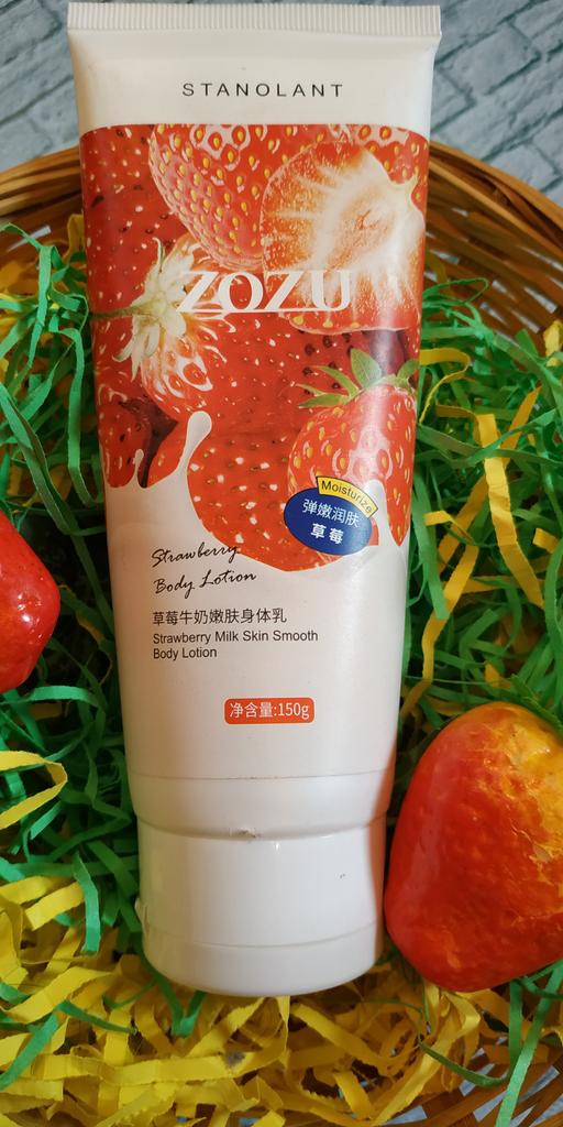 КЛУБНИЧНОЕ МОЛОЧКО ДЛЯ ТЕЛА ZOZU 🍓. Это мой повторный заказ. 🍓 Тюбик 150 гр. приходит без дополнительной упаковки. Имеется защитная металлическая мембрана. 🍓Крем белого цвета. Ожидала сладенького запаха клубнички, ан нет 🤷♀️. Аромат не ярко выраженный, напоминает запах дешёвого мыльца. Может это и к лучшему, запах держится недолго и не раздражает. 🍓Текстура крем очень лёгкая, отлично распределяется по коже. Расход экономичный, не выдавливайте слишком много. 🍓 Отлично увлажняет. В холодный период времени, когда коже не хватает витаминов, он мне очень пригодится. Также молочко успокаивает раздражение после бритья. 🍓 За такой объём и качество средства цена достаточно низкая. Покупкой, в целом, довольна. Запаха клубнички, правда, не хватает. Желаю всем только удачных покупок 🛍! 💋💋💋