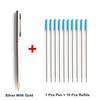 1 ручка + 10 стержней, металлическая шариковая ручка со стержнями для школы, офиса, материал из нержавеющей стали, вращающиеся канцелярские принадлежности, ручки