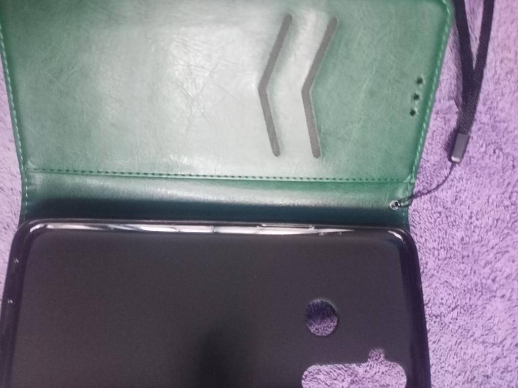 Темно зелёный чехол _книжка для телефона.Все соответствует описанию.Так же есть отделения для карточек.Из кожзаменителя.Закрывается на магнитном хлястеке.Продавца рекомендую.