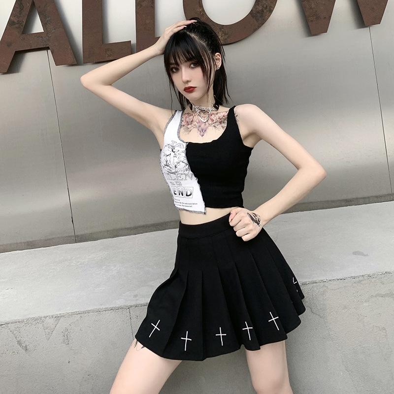 Лоскутные топы на бретелях в стиле панк, женские укороченные топы без рукавов с эстетичным буквенным и графическим принтом, уличная одежда без рукавов с цветными блоками