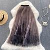 Qooth Женская весенняя газовая юбка средней длины с высокой талией, повседневная сетчатая юбка трапециевидной формы с принтом QT1824