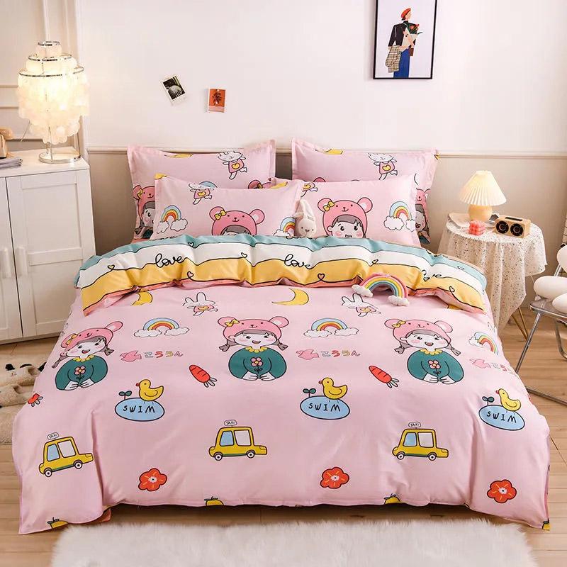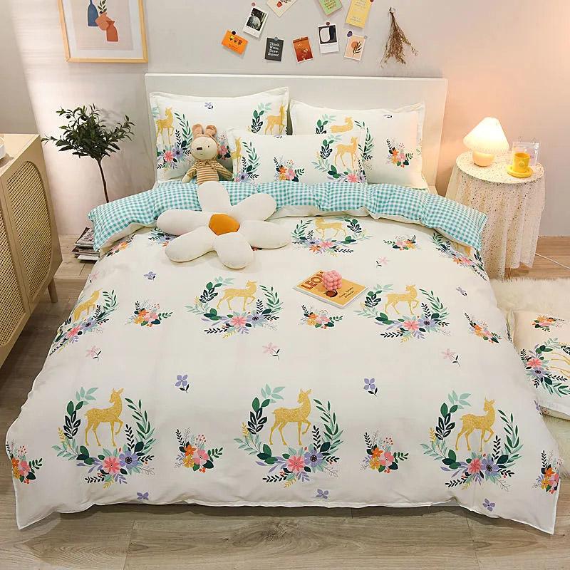 Общежитие 1,2 м Кровать Пододеяльник Простыня Набор из трех предметов Принт Покрывало Наволочка Комплект постельного белья Хлопок Комфортное постельное белье Набор из четырех предметов