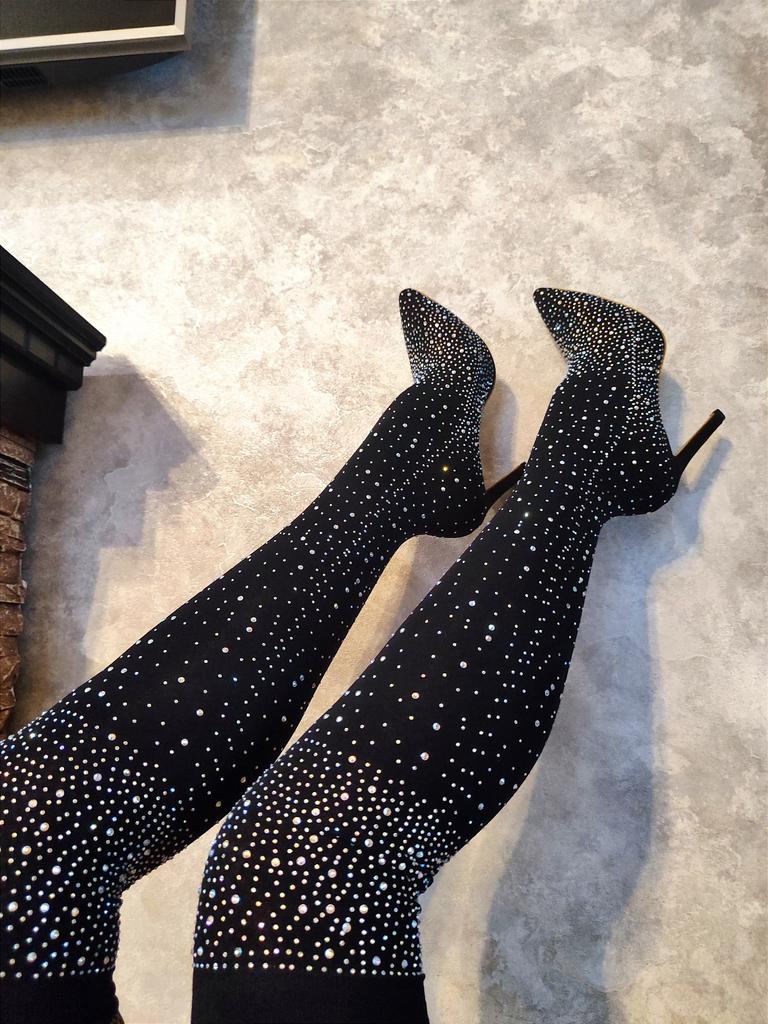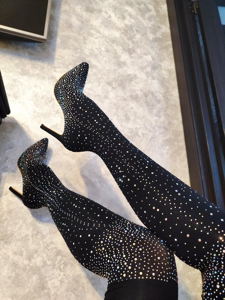 Женские сапоги выше колена Eilyken Design со стразами и кристаллами, сексуальные носки, туфли выше колена с острым носком, черные 1197-2 — купить товар онлайн с бесплатной доставкой по всему миру!