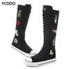Весенне-осенние женские ботинки, парусиновые сапоги до середины икры, повседневная обувь с высоким берцем, длинные сапоги, удобные ботинки на плоской подошве со шнуровкой, размер 34-43