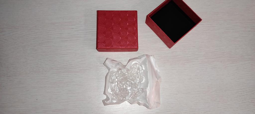 В красивой подарочной коробочке, очень приятно. Хорошо был упакован. Цепочка соответствует описанию. Минус: нет застёжки. Кольца соединяются между собой легким нажатием, но это не очень удобно и наверное не надолго хватит, пластик сломается...