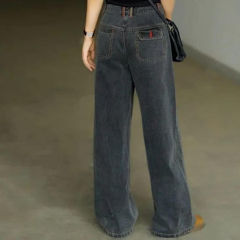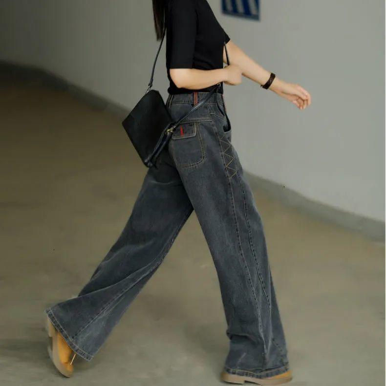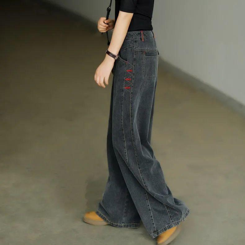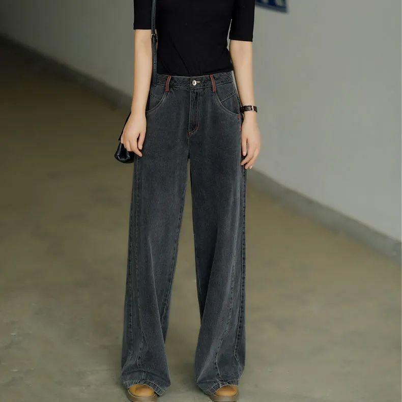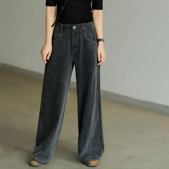 Женские весенне-осенние джинсы больших размеров с высокой талией, широкие прямые брюки, свободные джинсовые джинсы, винтажные повседневные брюки