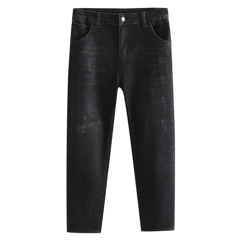 Женские весенне-осенние повседневные брюки большого размера с высокой талией, свободные прямые джинсы, джинсовые укороченные брюки