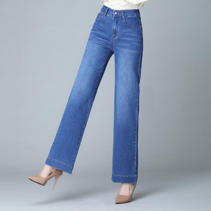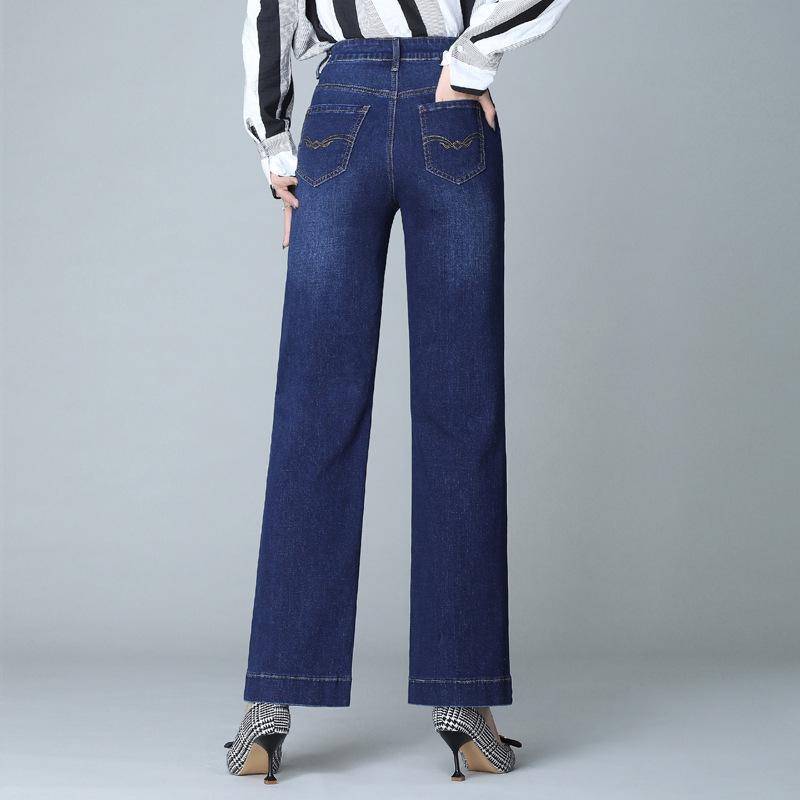 Весенне-осенние брюки с высокой талией, женские джинсы со свободной талией, повседневные женские прямые длинные брюки больших размеров