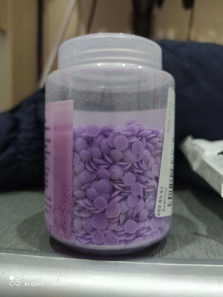 Кондиционер для белья пришёл без повреждений и дефектов, баночка пластиковая с закручивающейся крышкой,100гр почти полная,заказала сиреневый,запах сладковатый, пахнет приятно лавандой, насыщенный, после стирки думаю будет запах,но слабее,когда буду стирать,дополню. По размеру,как половинки витаминок в драже. Звезду добавлю,если понравится. Спасибо продавцу за аккуратность при формировании заказа. Вчера стирала бельё, добавляла в барабан пол крышечки этих ,,полувитаминок,, сразу при стирке,полосаание ставила ещё дополнительное, запах белья остался нежный,приятный,мне средство понравилось, могу рекомендовать. Спасибо производителю и продавцу за качественный товар.