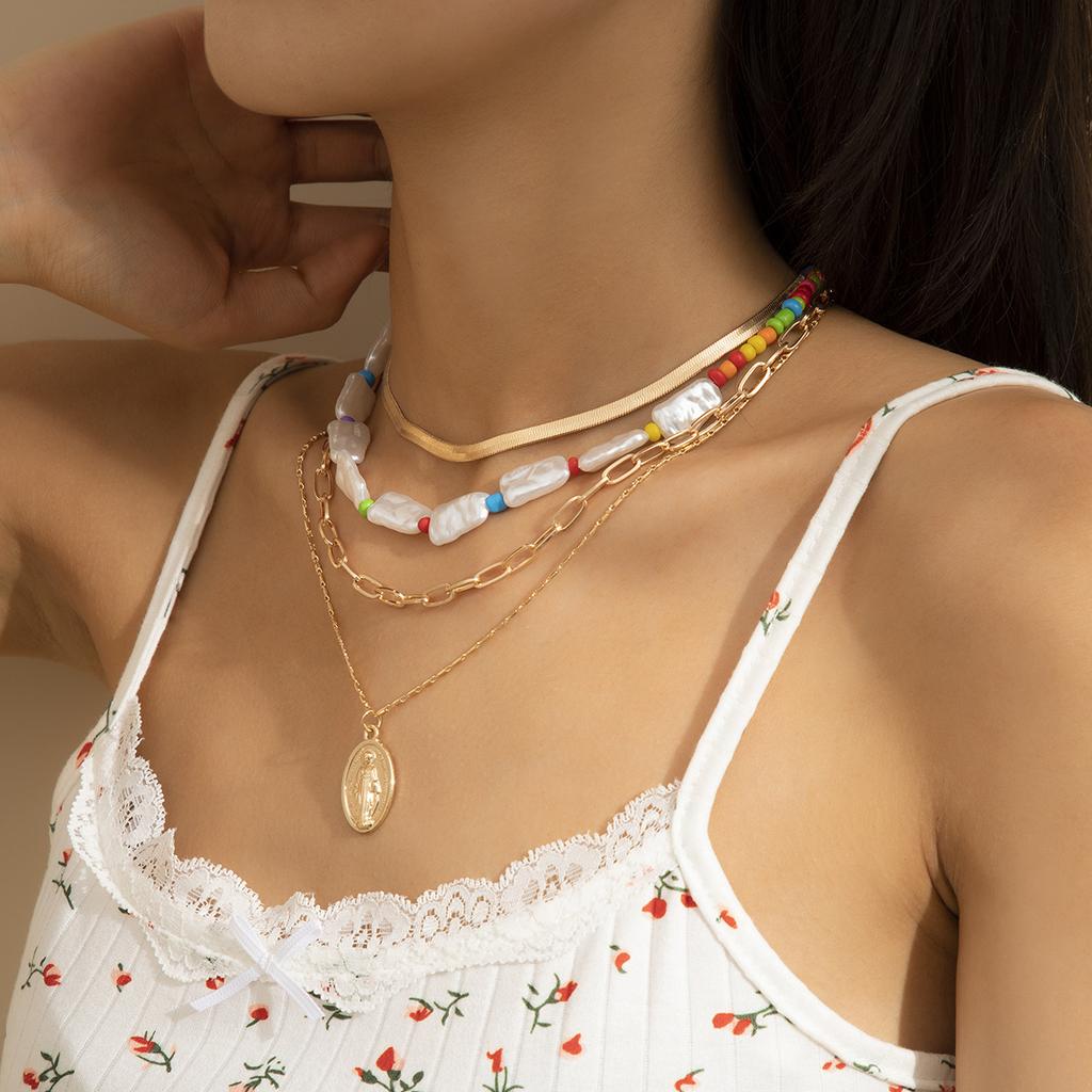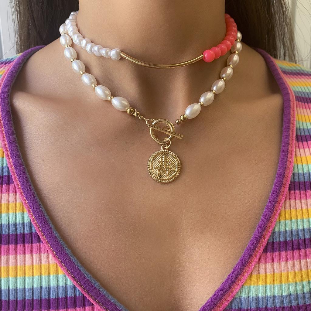 Простое модное многоцветное бежевое ожерелье с буквами и буквами в стиле ретро, ожерелье с замком, ювелирное изделие, подарок для женщин