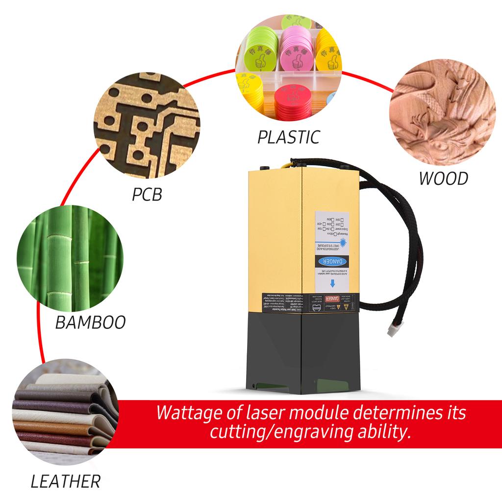 Профессиональный лазерный модуль, простой в установке, с меньшими потерями, обеспечивает длину волны 450 нм, для эффективной, точной гравировки и резки пластика, дерева, кожи, бумаги и т. Д., Подходит для широкого спектра гравировальных машин.