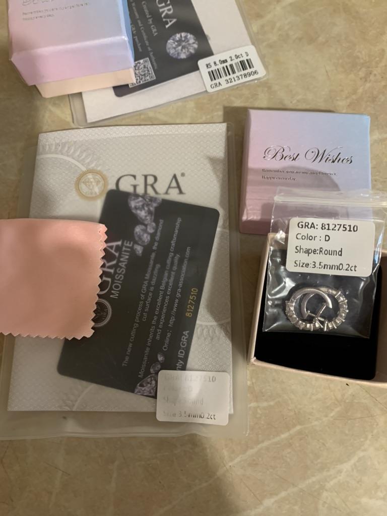 Пришли в полной комплектации- есть и сертификат и черная карта на муассаниты( на всю россыпь сразу) и салфетка для ухода за изделием. Сами серёжки, по мне, чуть маловаты. Но камешки красиво переливаются, круче чем брюлики😁